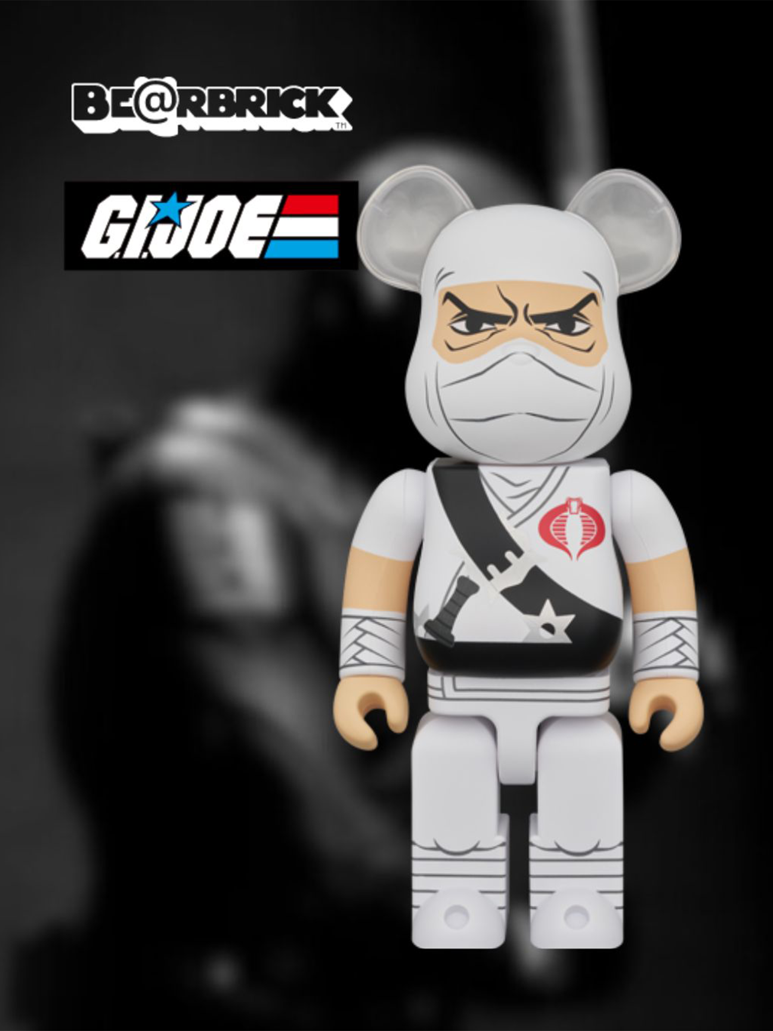 BE@RBRICK Stormshadow 400% แปลงโฉมนินจาโคบร้าในตำนานของ G.I. Joe อย่าง Storm Shadow มาสู่รูปทรงหมีสุดคลาสสิกของ Medicom Toy ฟิกเกอร์นี้โดดเด่นด้วยชุดนินจาสีขาว หน้ากาก และตราสัญลักษณ์โคบร้า ถ่ายทอดเป็นกราฟิกสะอาดคมชัดที่ดูเด่นในทุกดิสเพลย์